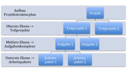 Zerlegung der Gesamtprojektaufgaben in eine Vielzahl von Teilaufgaben